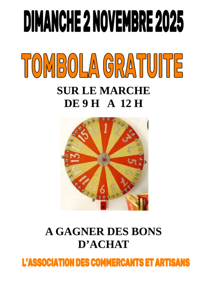 Dimanche prochain, l’Association des Artisans et Commerçants de Pleumartin organise une tombola gratuite, sur le marché, avec des bons d’achats à gagner.
