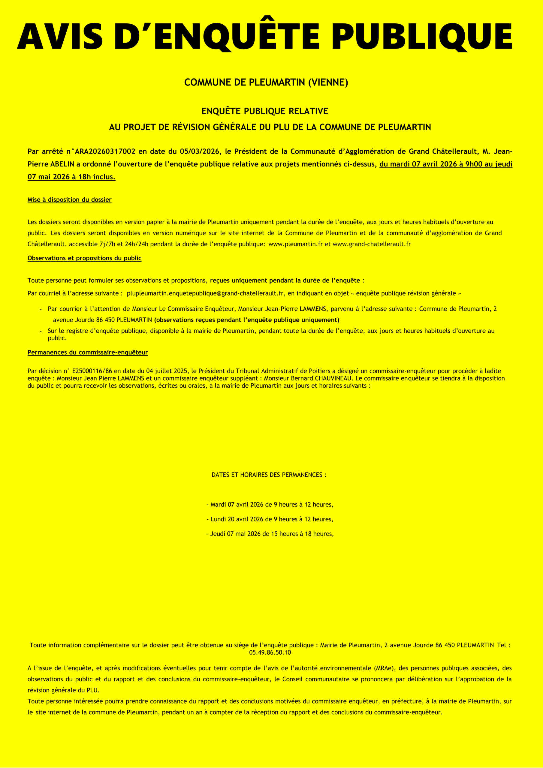 Séance ordinaire du vendredi 20 mars 2026, à 18h30, salle polyvalente E.CHAMBORD Ordre du jour : Installation des conseillers municipaux élus lors des élections du 15 mars 2026 Approbation du procès-verbal du Conseil municipal du 26 février 2026 Élection du Maire Détermination du nombre d’adjoints Élection des adjoints Lecture de la charte de l’élu local […]