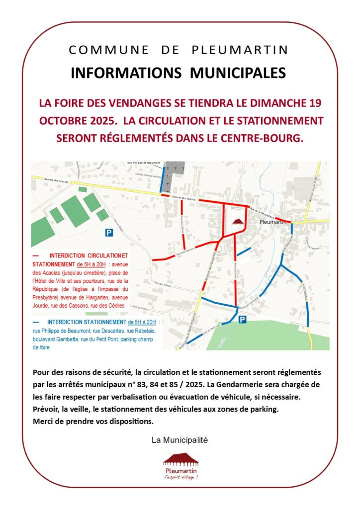 Ce dimanche, le stationnement et la circulation seront réglementés dans le centre-bourg.